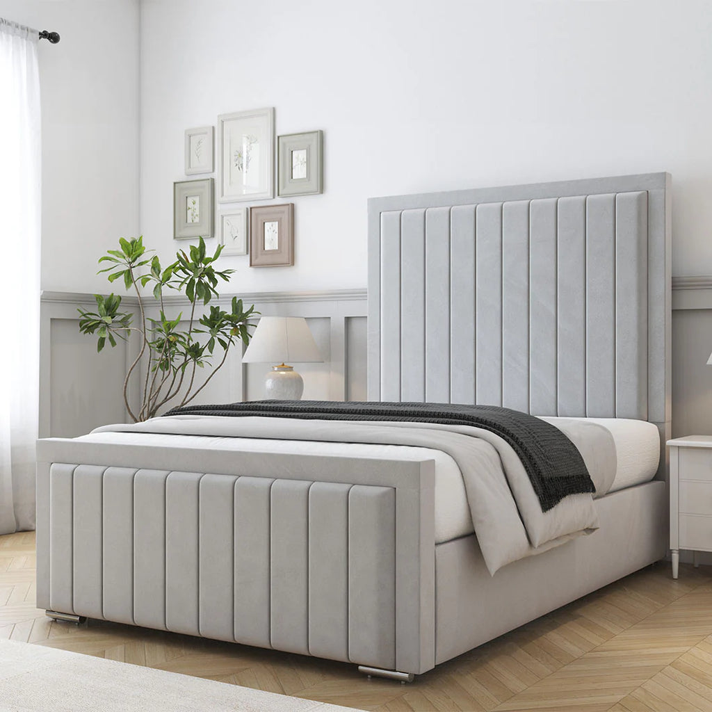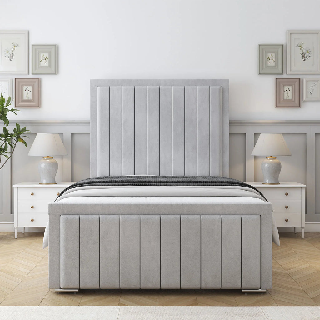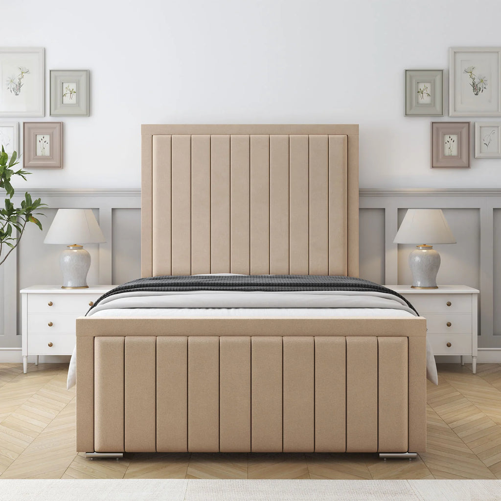 Experience elegant modern design with the Louise Bed Frame, a luxury upholstered bed crafted to enhance both comfort and style in your bedroom. Featuring a beautifully padded vertical lined headboard, this bed adds a sophisticated and contemporary look to any interior space.