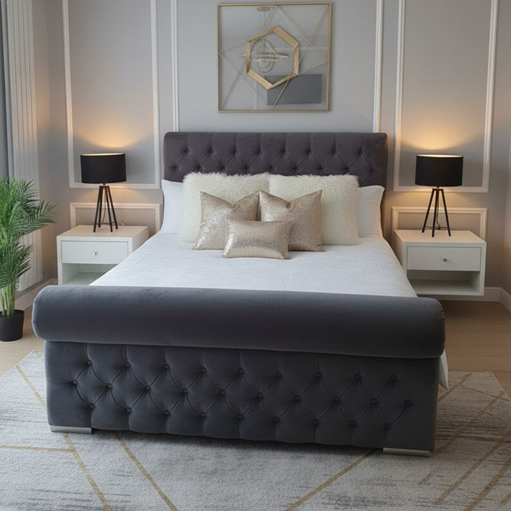 Royal Sleigh Bed Frame | Luxury Bed with Buttoned Headboard | Dreamtime Ltd UK