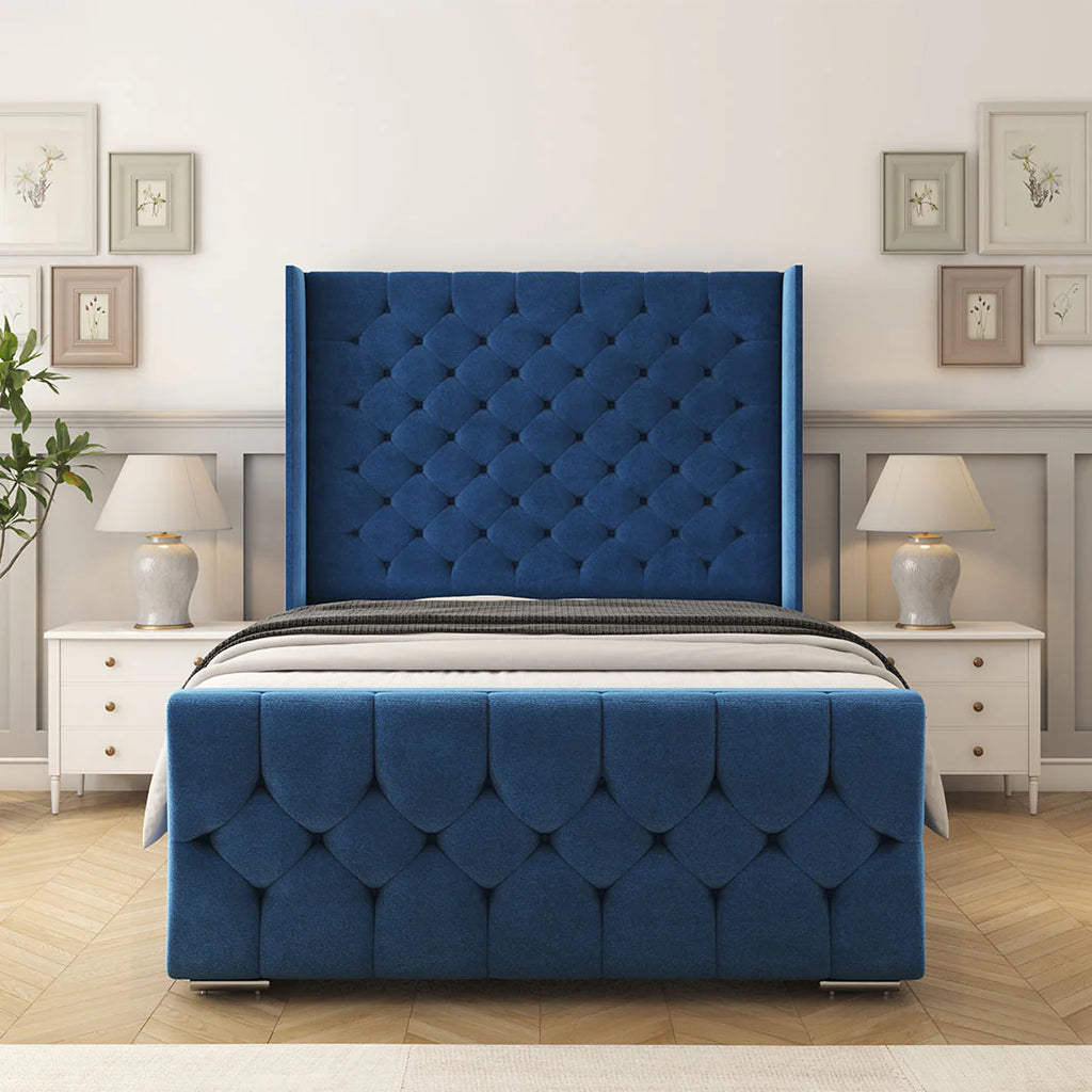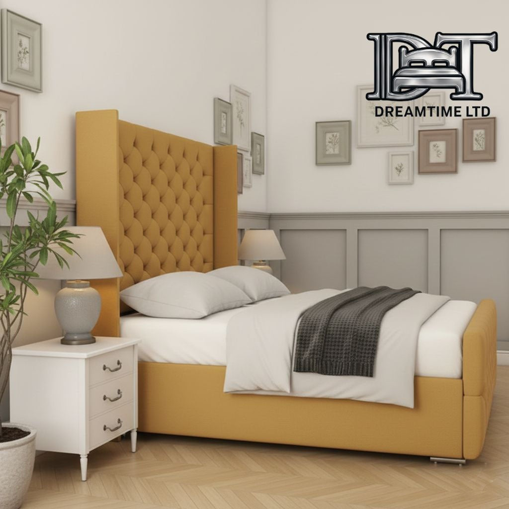 Transform your sleep space with the Winged Toronto Luxury Bed Frame. Crafted with attention to detail, this bed frame boasts a button-tufted headboard and elegant winged sides, offering a regal and inviting look. Made from high-quality materials, it combines durability with refined aesthetics, making it the centerpiece of any bedroom. Ideal for pairing with your favorite mattress, it provides both style and comfort for a restful night. Available in multiple sizes to suit every home.